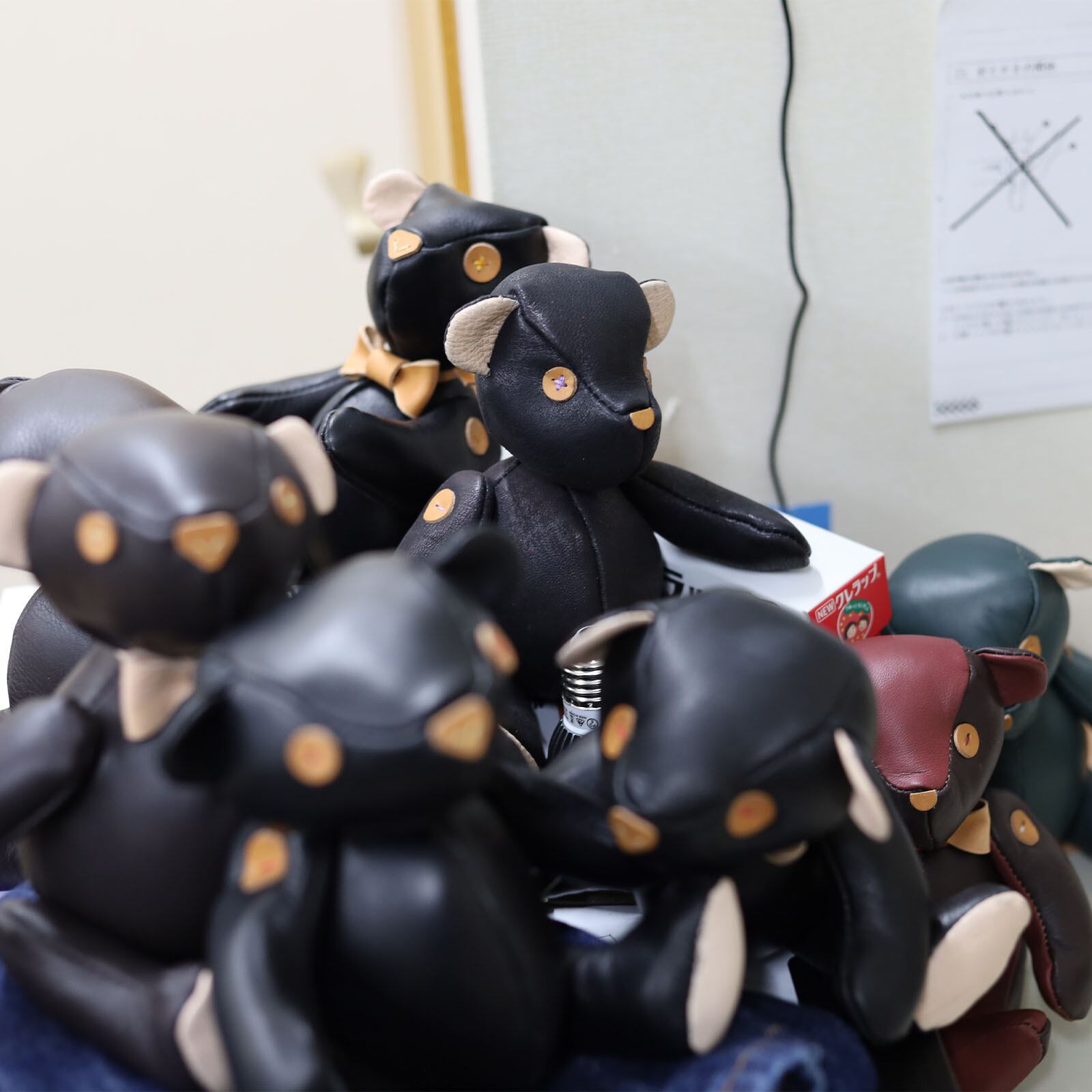 革の切り出しから縫製まで、ひとつひとつ手仕事で仕立てたオリジナルのテディベアです。