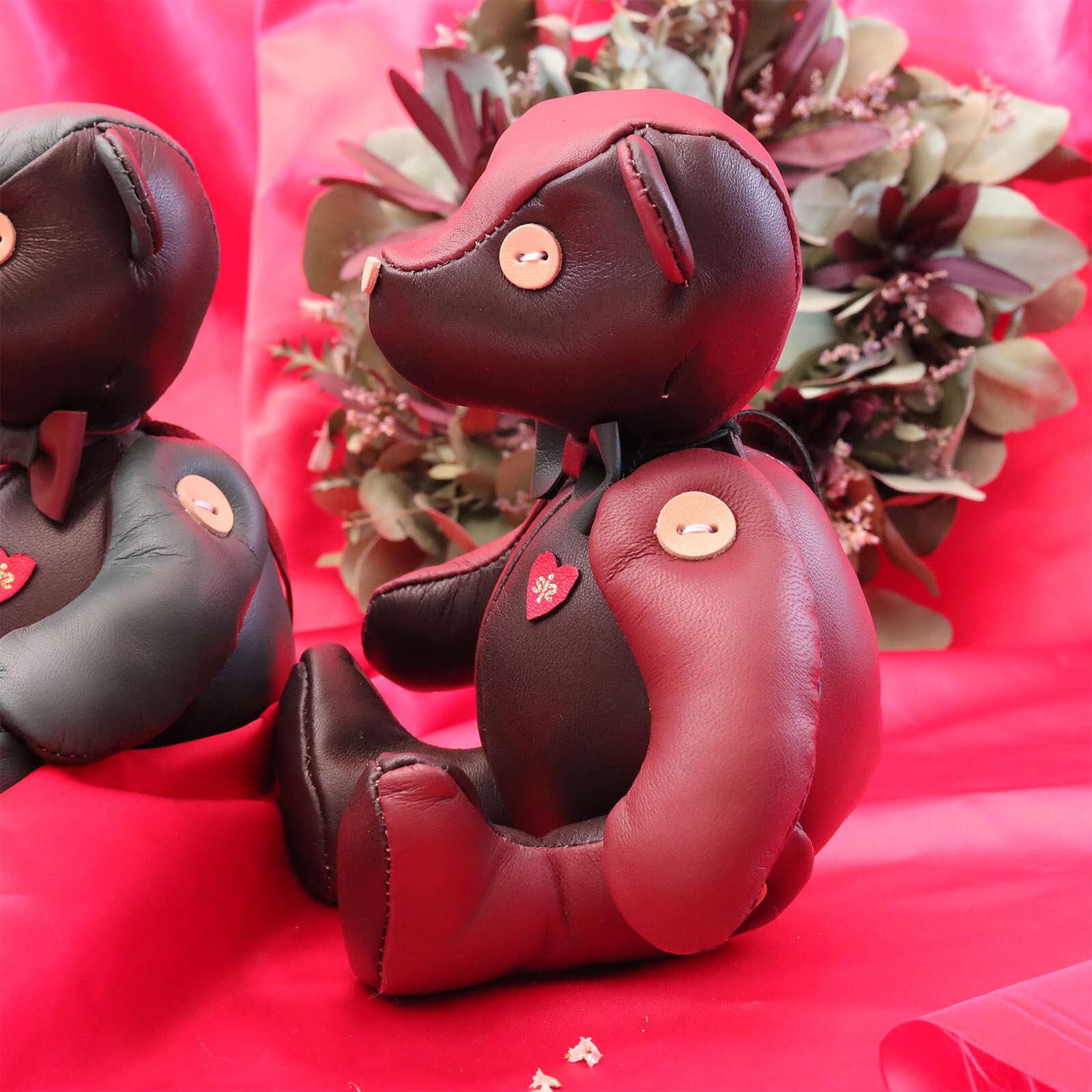 ”本革”で仕立てた手作りのテディベア 【アカチャ】【ミドチャ】